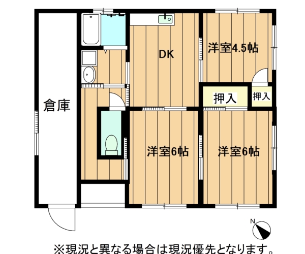 | 間取り | 3DK (洋4.5・洋6×2・DK) |