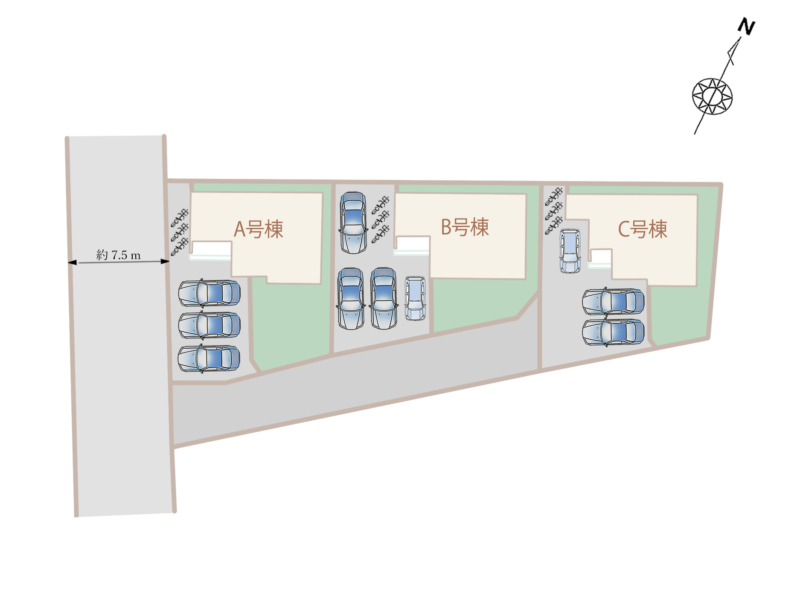 | 接道状況 | C号棟:東7..5m 公道 接⾯19.9m |